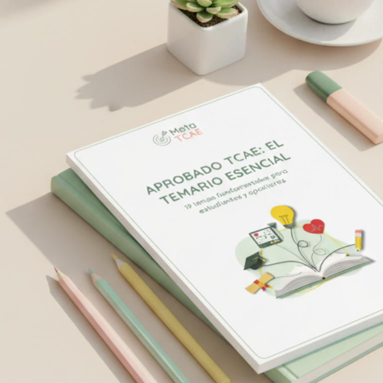 - PDF Temario Esencial TCAE (19 temas) con marcadores de repaso.